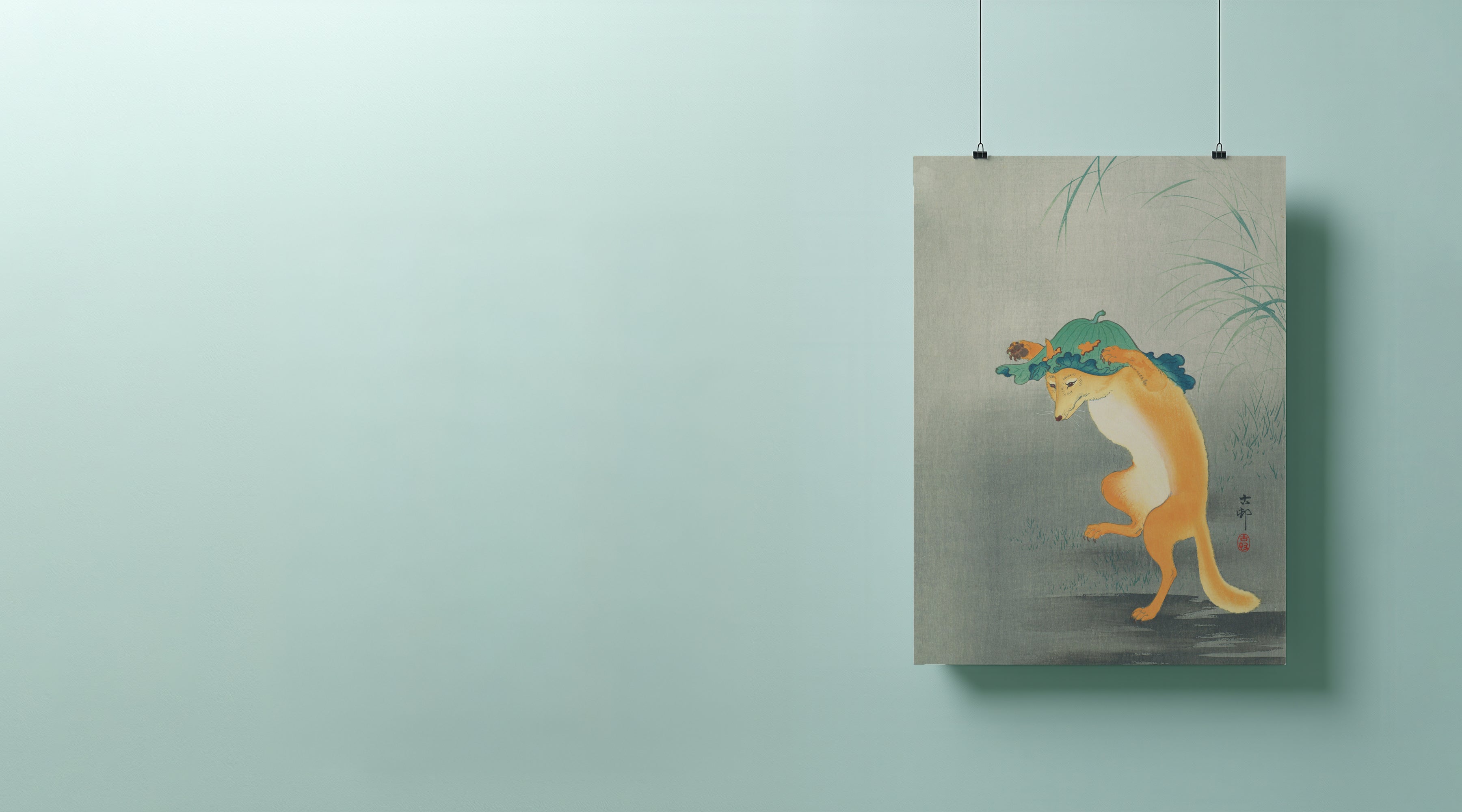 Dancing Fox with Lotus-leaf Hat By Ohara Koson - Art Print