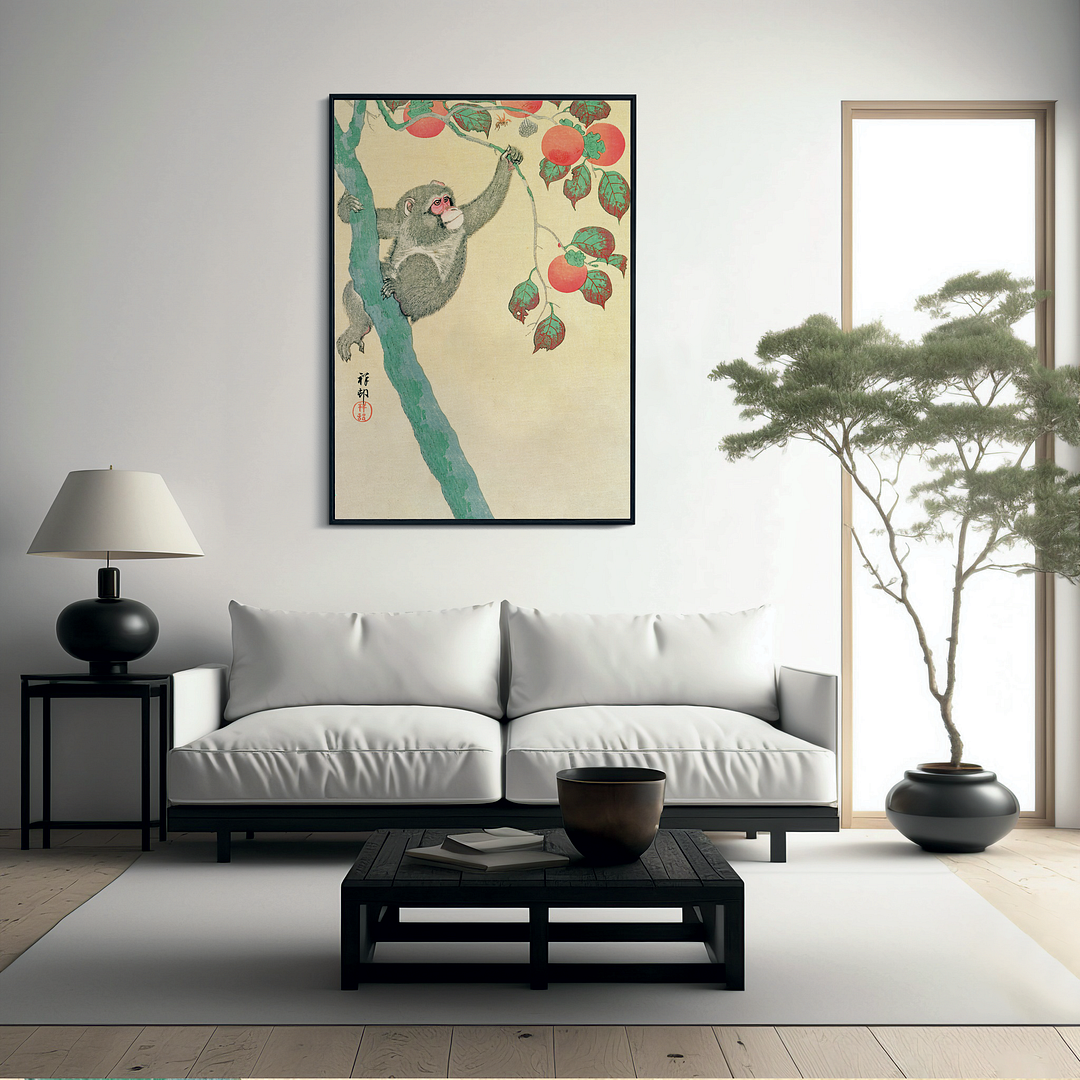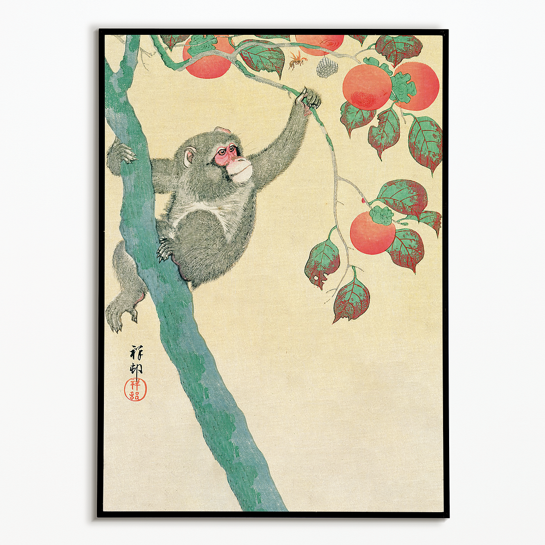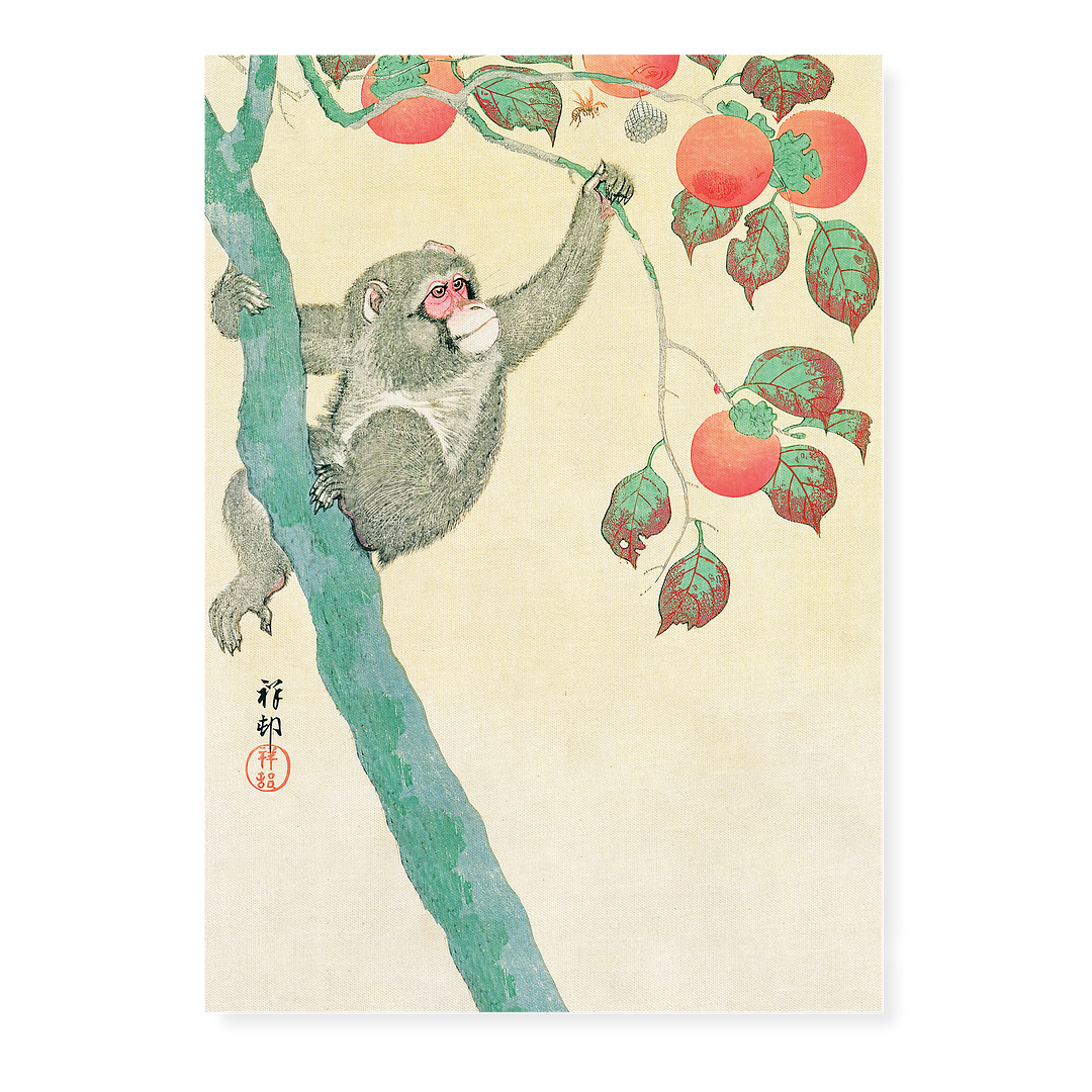 Monkey in a Persimmon Tree By Ohara Koson - Art Print