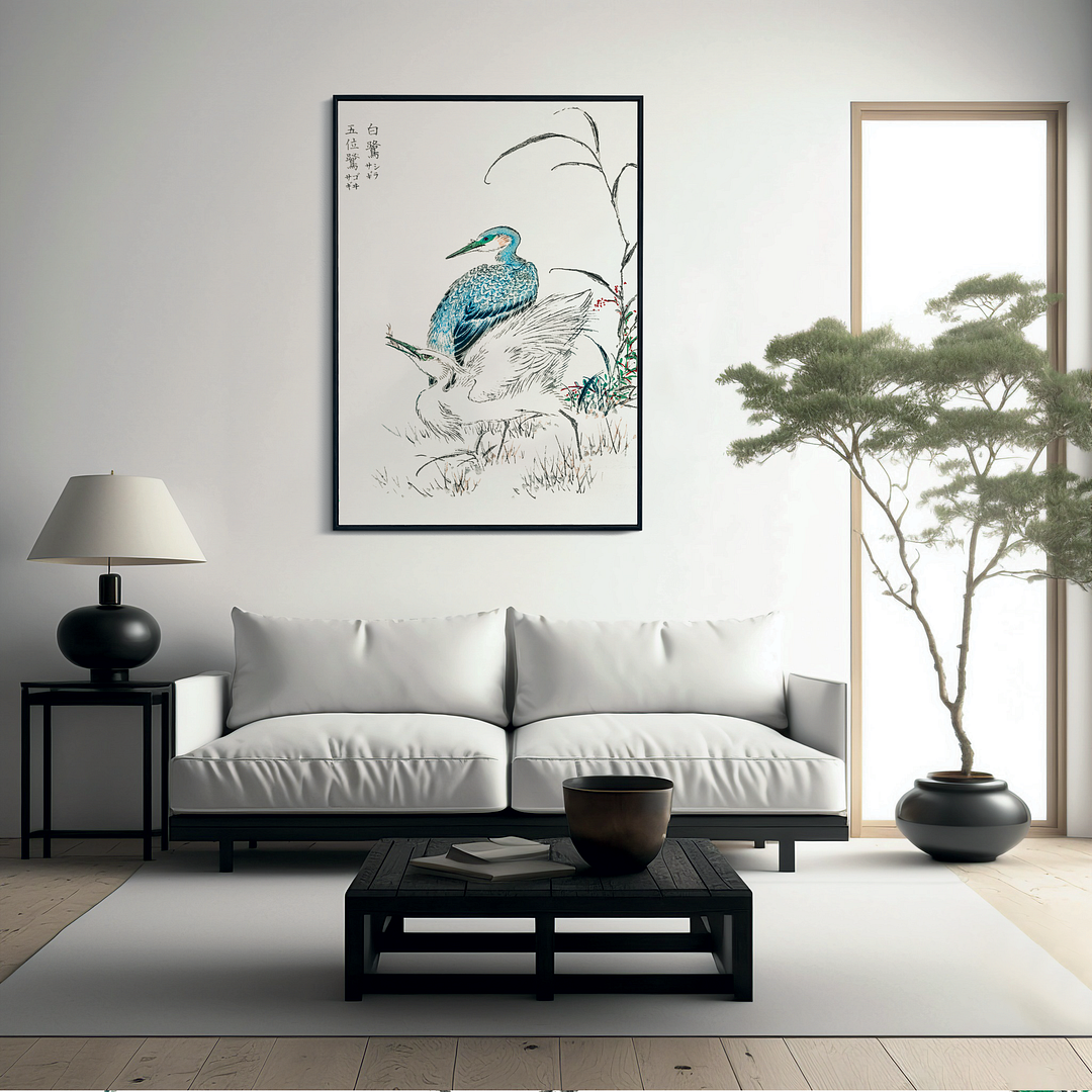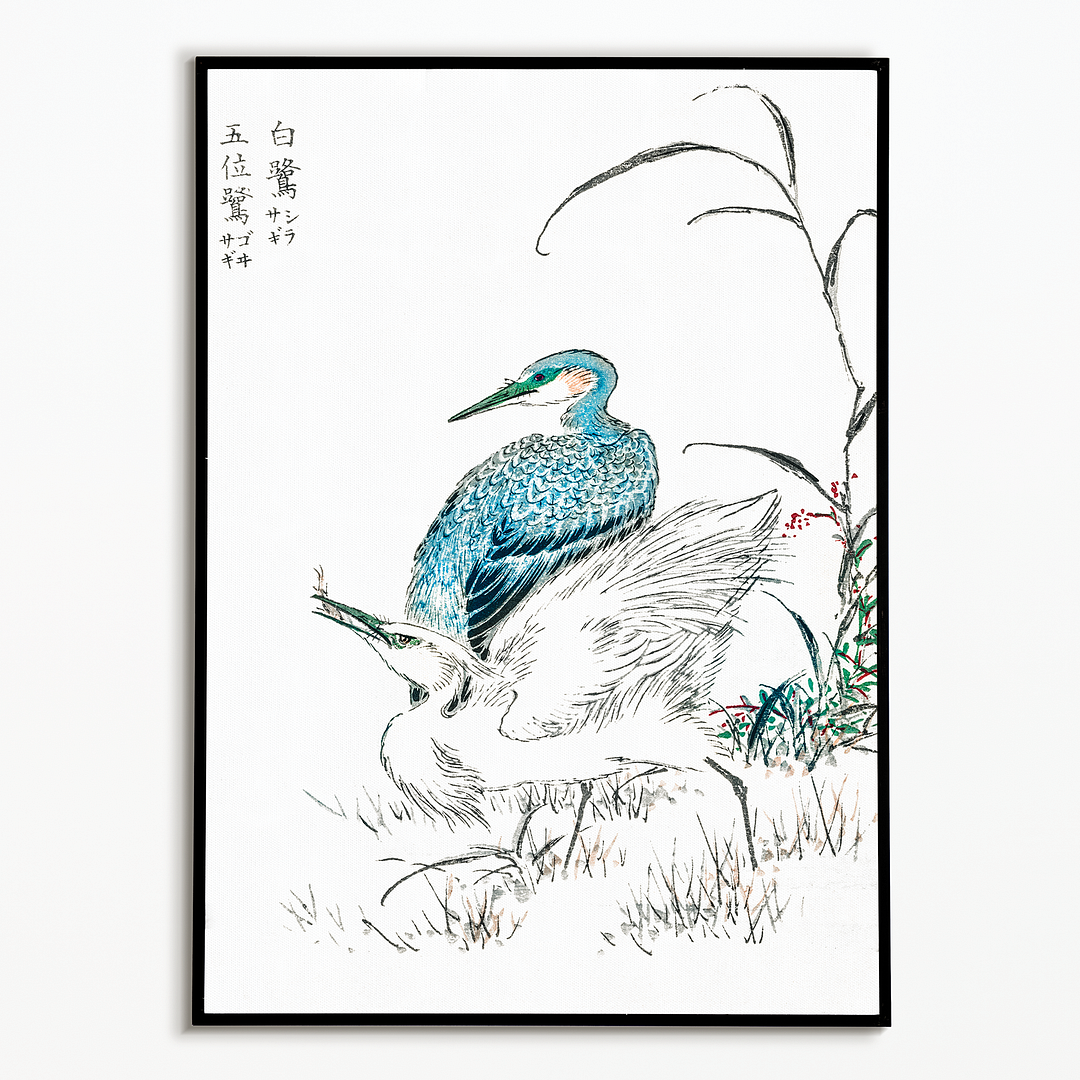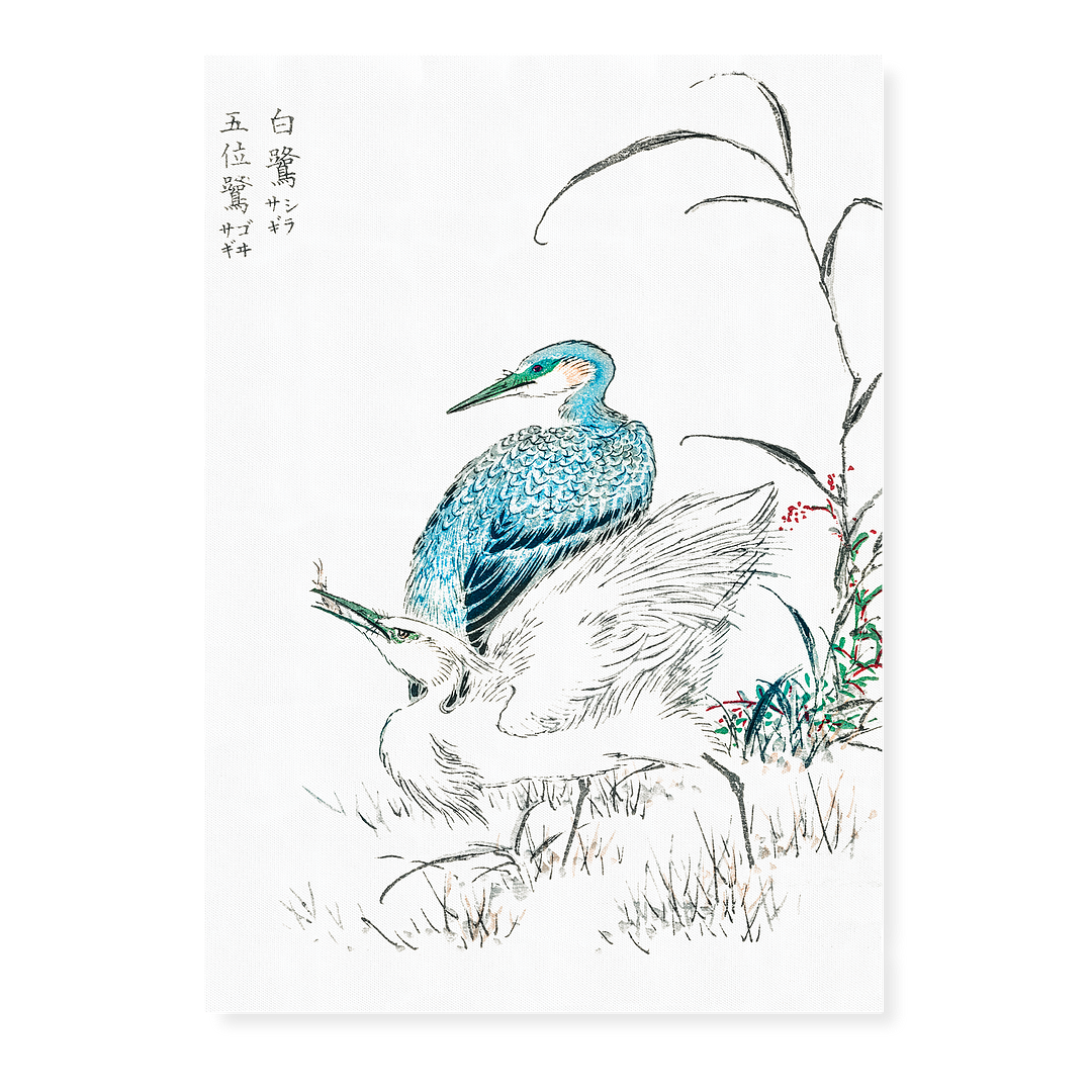 Night Heron and Little Egret By Numata Kashu - Art Print
