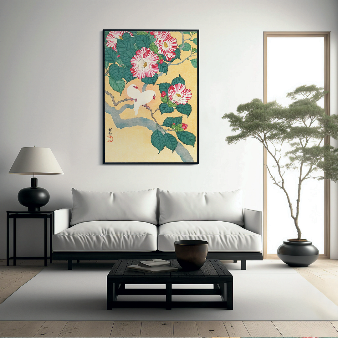 Camellia and Rice Birds By Ohara Koson - Art Print