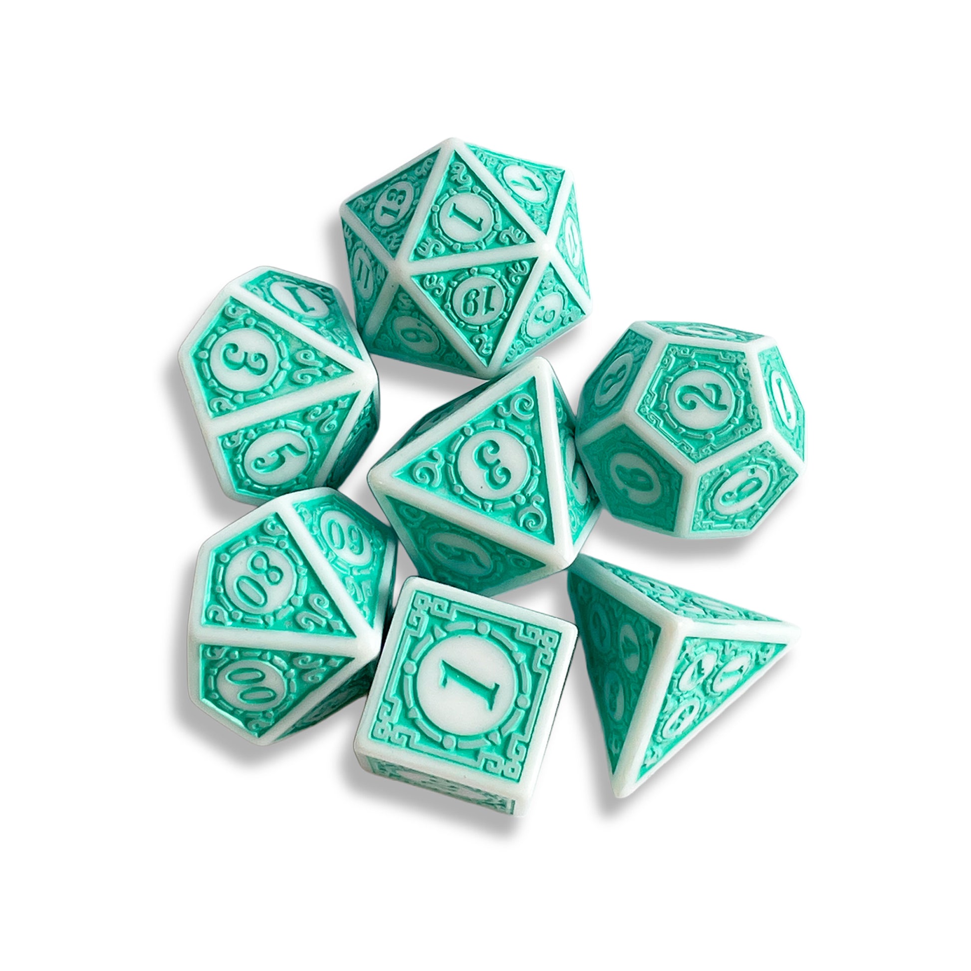 White & Aqua Blue Sea Green D&D Dice | Polyhedral RPG Dice Set