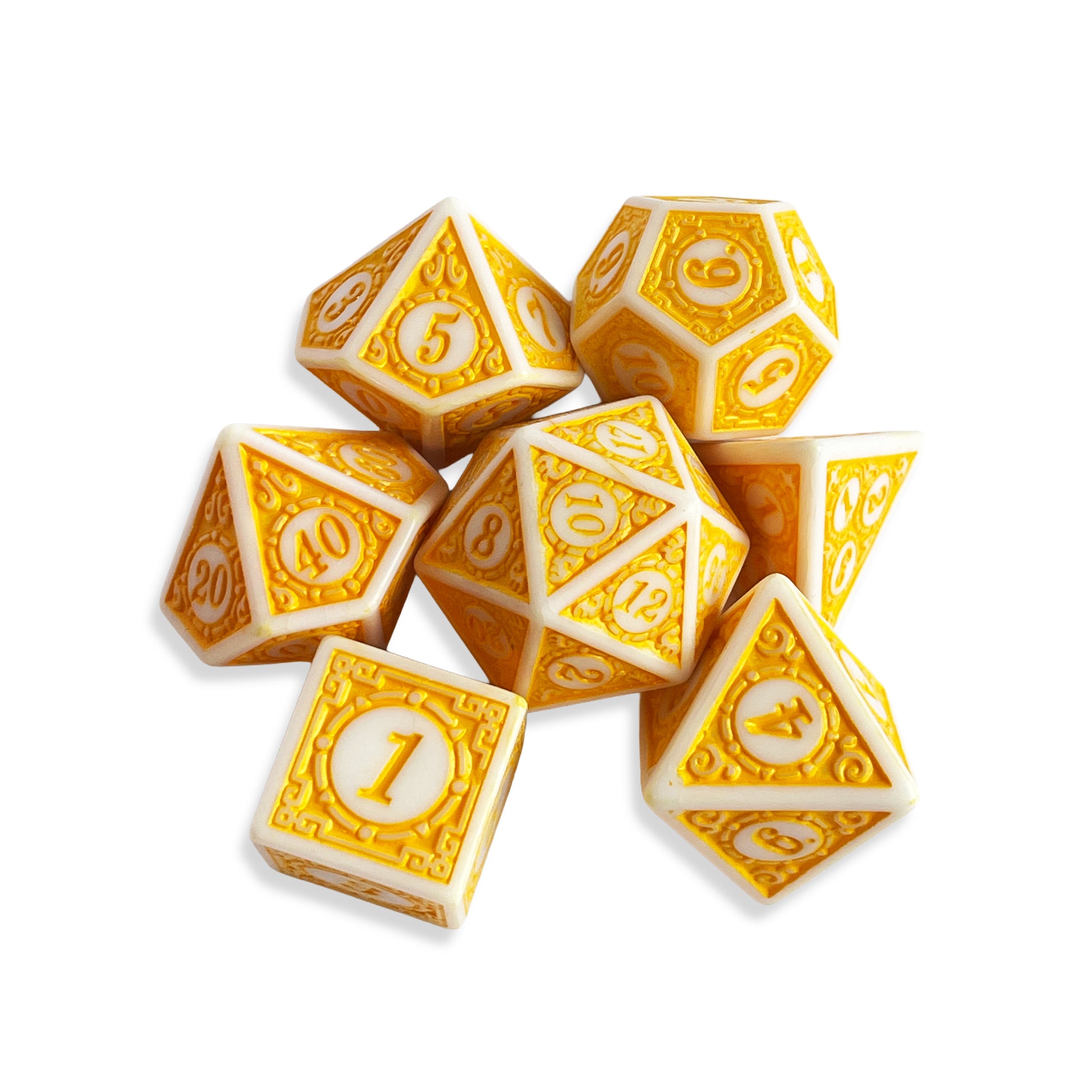 White & Yellow D&D Dice Set | Polyhedral RPG Dice for Dungeons & Dragons
